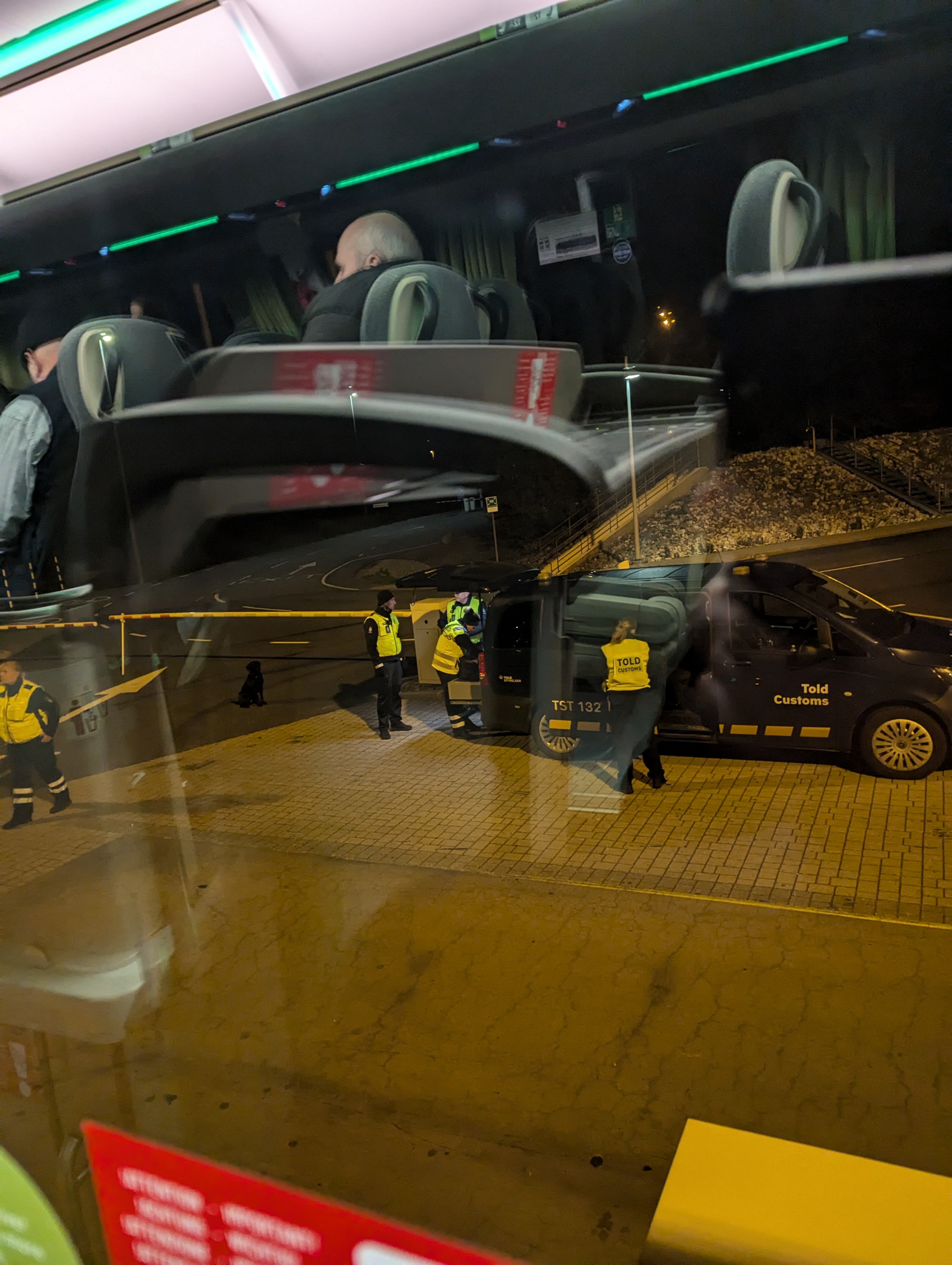 בדרך חזרה לקופנהגן איפשהו באמצע הדרך האוטובוס עצר, בחוץ ראינו מלא שוטרים ואחרי כמה דקות התבקשנו לרדת החוצה עם דרכונים.